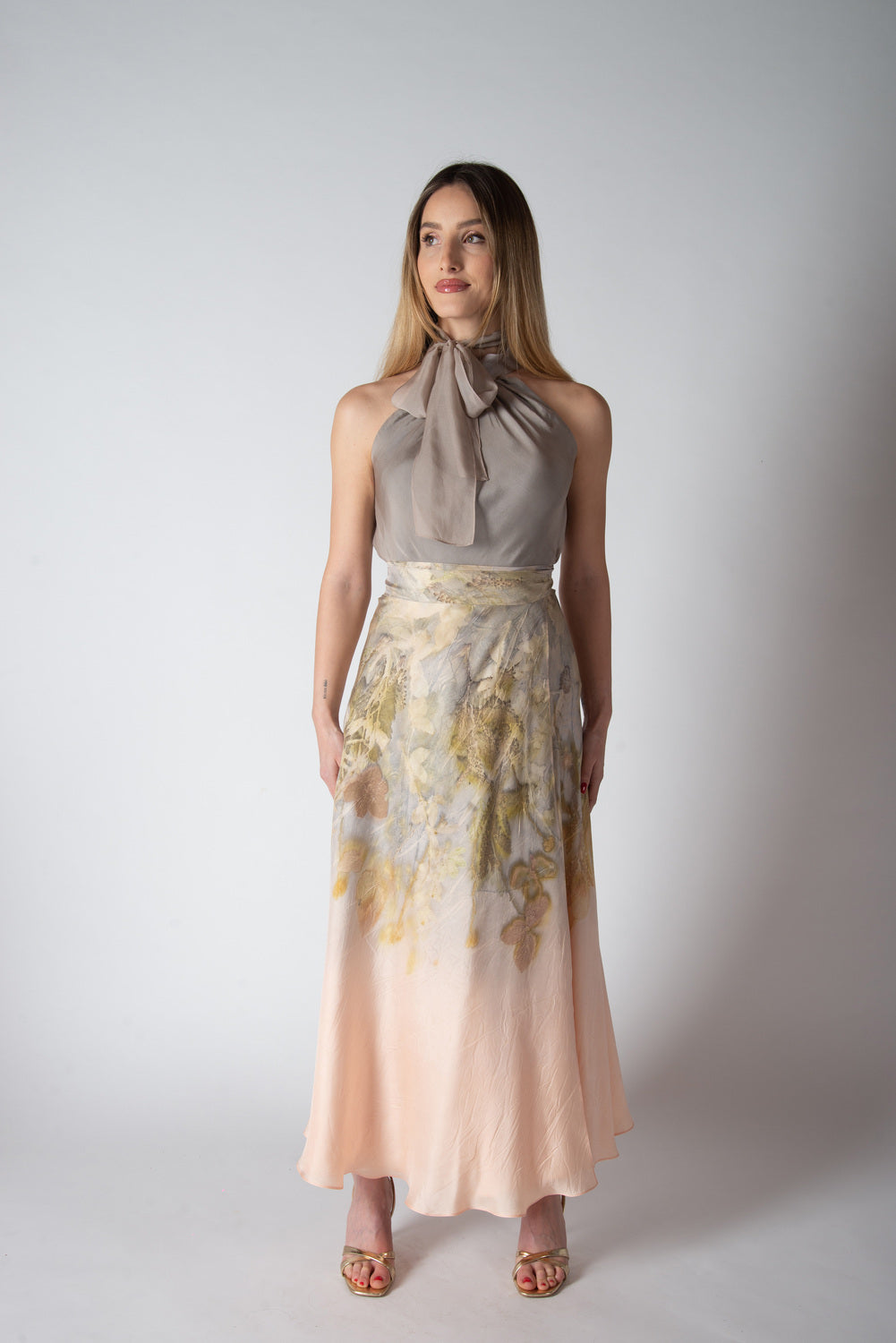 Fresca e leggera, versatile per il giorno o la sera, facile da abbinare con top o bluse della collezione per un outfit elegante e naturale.