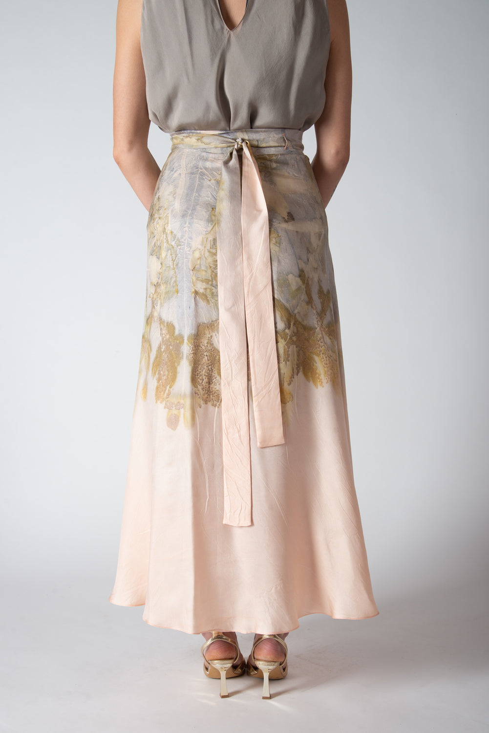 Gonna a portafoglio in twill di seta eco stampata, regolabile e taglia unica.