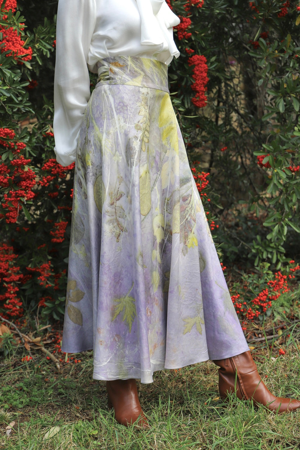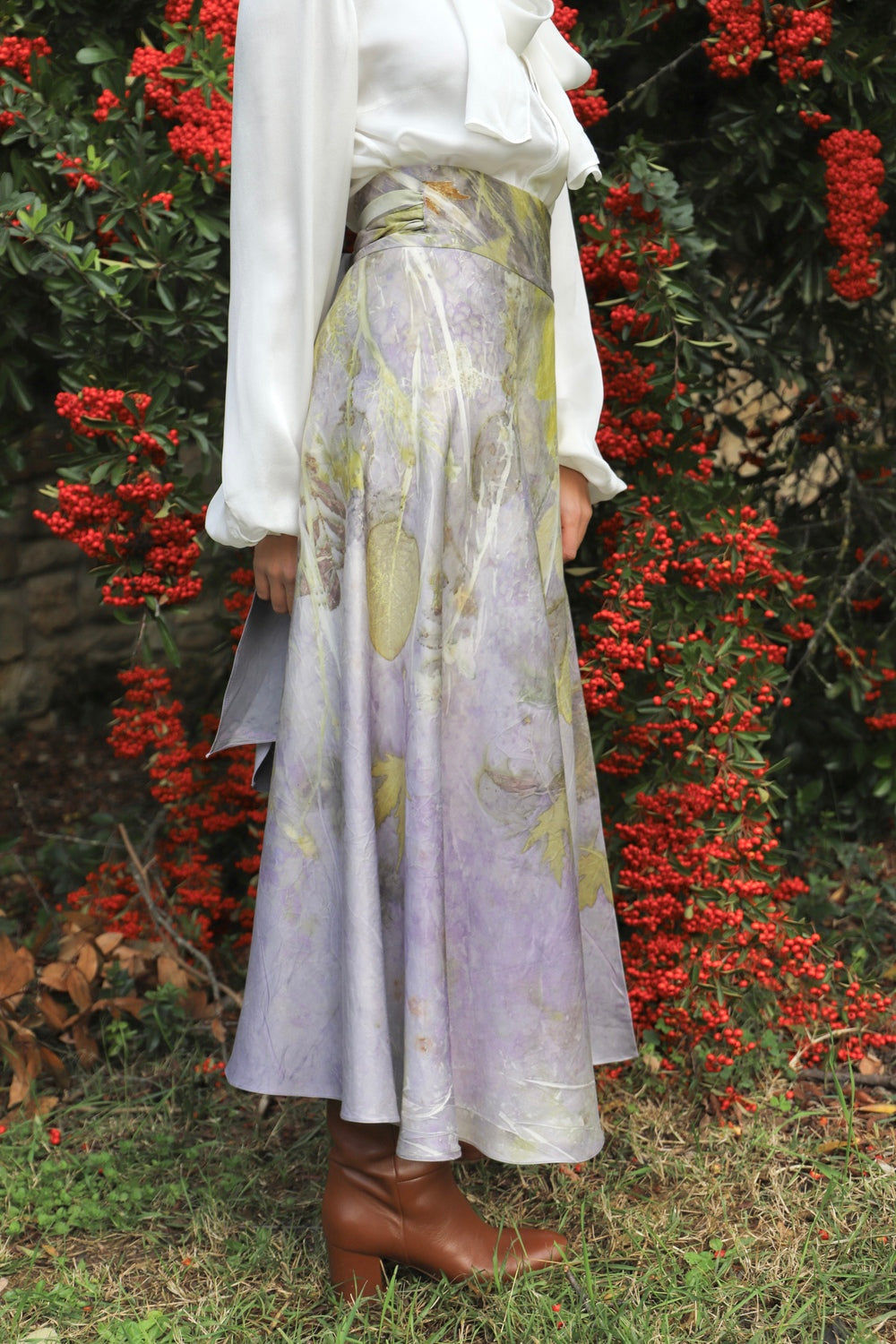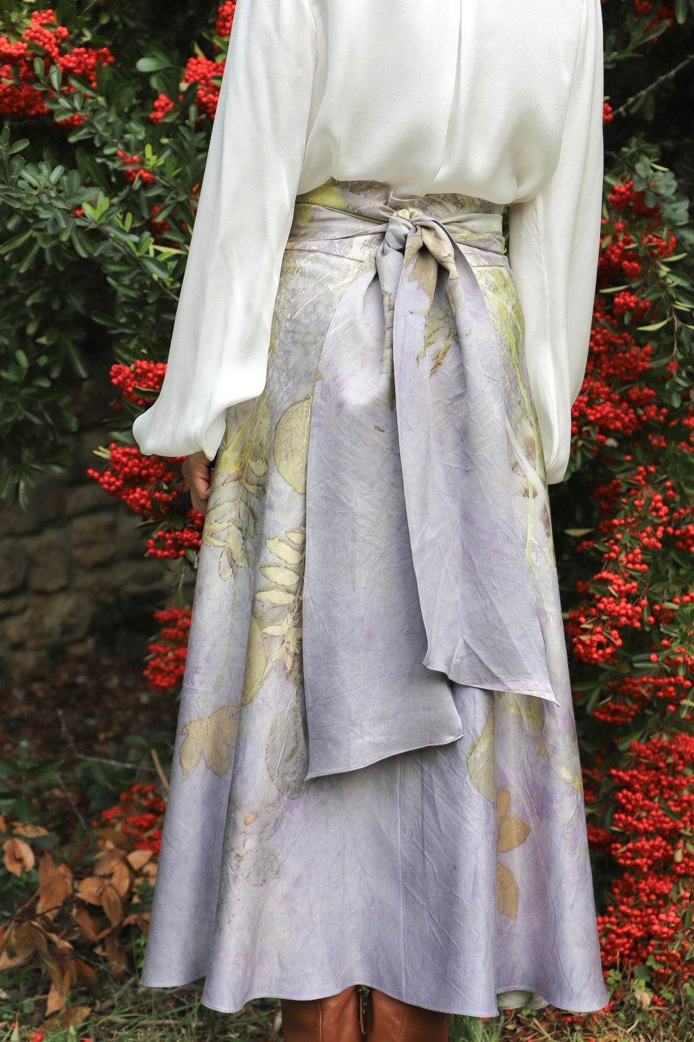 Caratterizzata da una classica silhouette a portafoglio, questa gonna midi in misto raso di seta/lana è un capo versatile, fatto per durare e da custodire nel proprio armadio. Tagliata in sbieco, grazie alla sua particolare fluidità e alla chiusura regolabile tramite lacci, segue armoniosamente le linee del corpo e si adatta a diverse fisicità. La cintura alta sottolinea il punto vita; il tessuto è corposo, caldo e avvolgente.