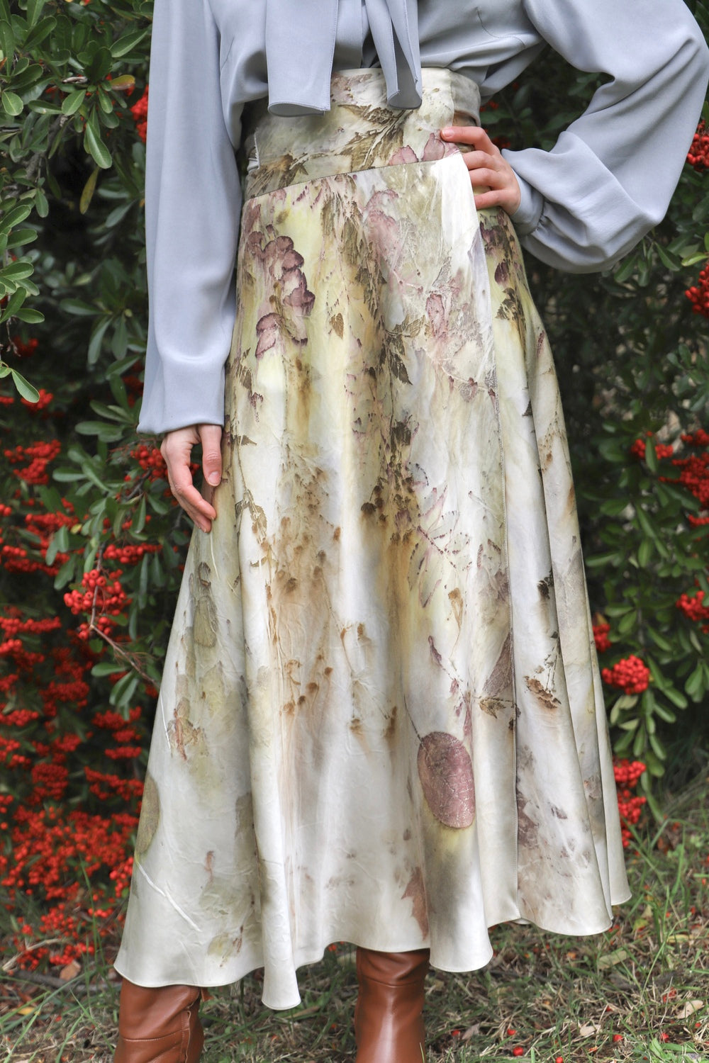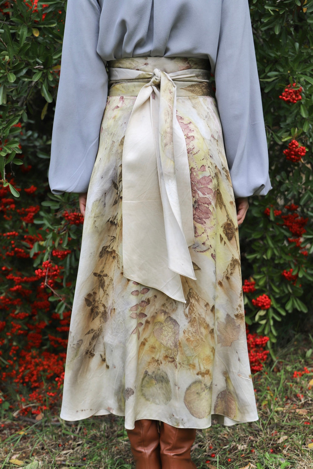 Caratterizzata da una classica silhouette a portafoglio, questa gonna midi in misto raso di seta/lana è un capo versatile, fatto per durare e da custodire nel proprio armadio. Tagliata in sbieco, grazie alla sua particolare fluidità e alla chiusura regolabile tramite lacci, segue armoniosamente le linee del corpo e si adatta a diverse fisicità. La cintura alta sottolinea il punto vita; il tessuto è corposo, caldo e avvolgente.