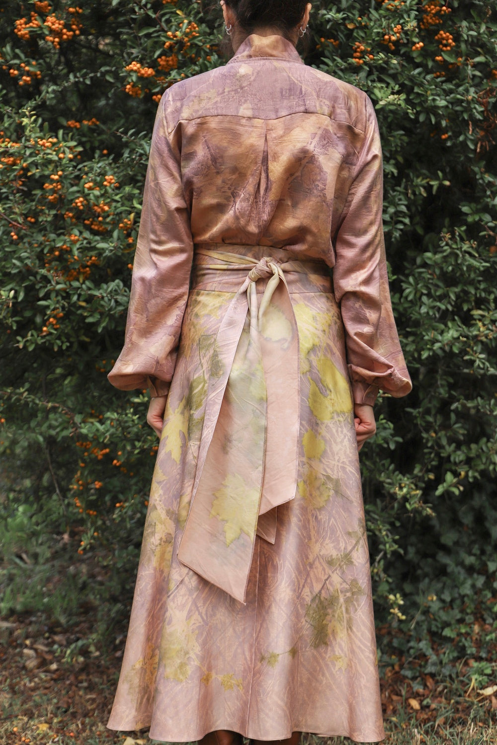 Caratterizzata da una classica silhouette a portafoglio, questa gonna midi in misto raso di seta/lana è un capo versatile, fatto per durare e da custodire nel proprio armadio. Tagliata in sbieco, grazie alla sua particolare fluidità e alla chiusura regolabile tramite lacci, segue armoniosamente le linee del corpo e si adatta a diverse fisicità. La cintura alta sottolinea il punto vita; il tessuto è corposo, caldo e avvolgente.